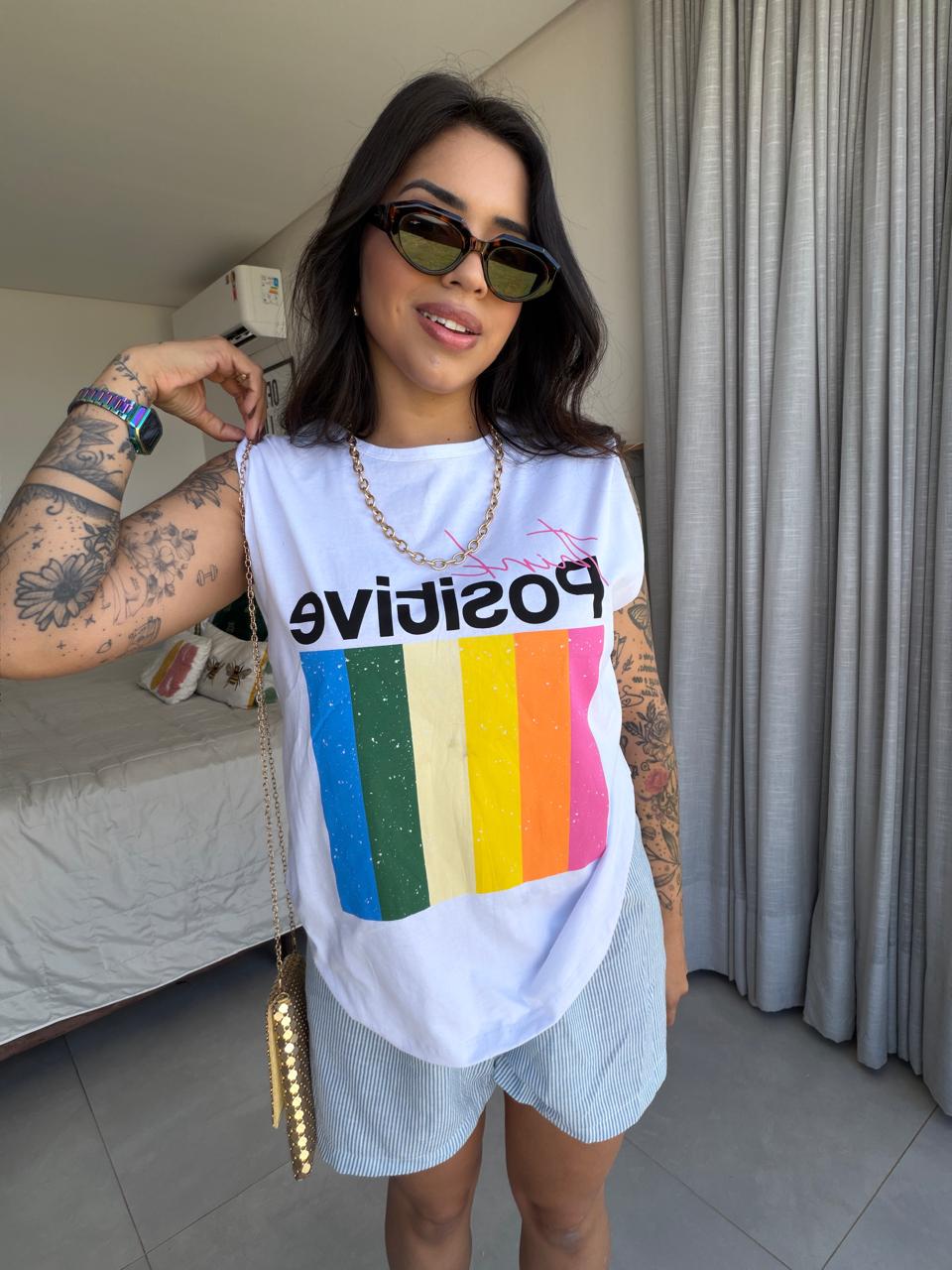 Blusa modelo Regata Marchão com estampa. Uma peça linda, versátil e super delicada para compor seus looks.