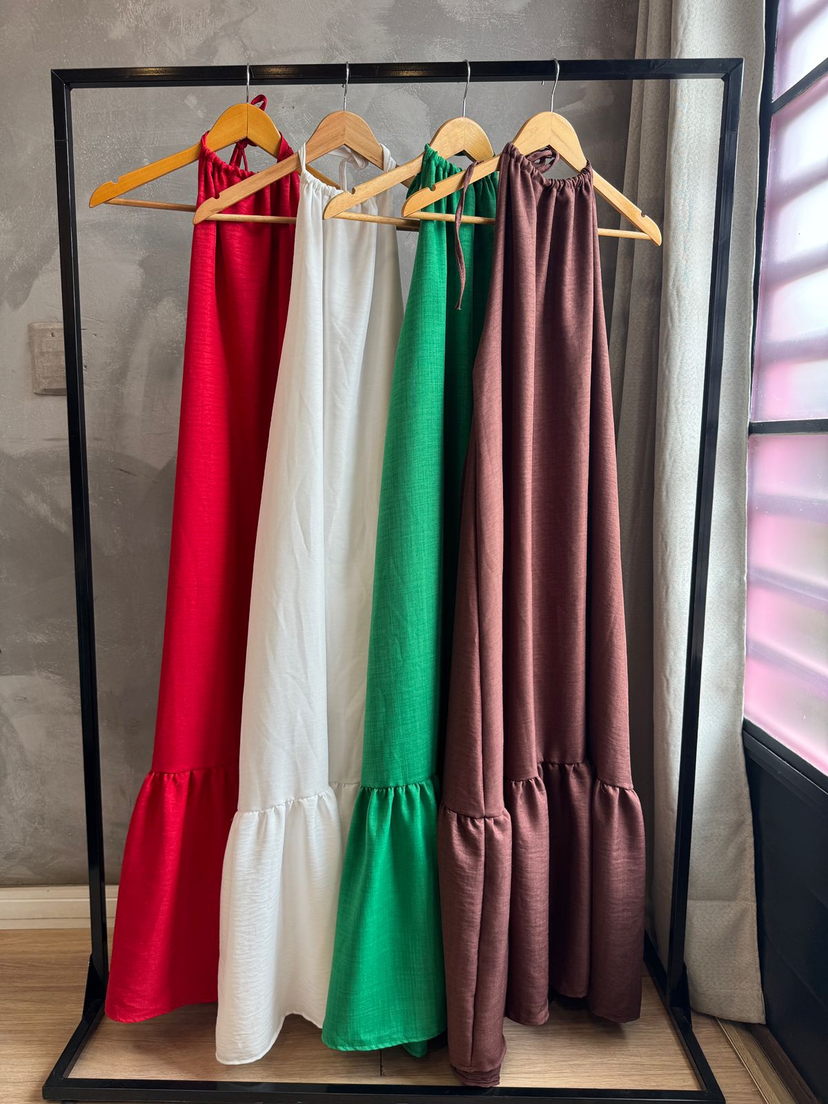 Vestido fluído com amarração frente única no pescoço para melhor ajuste, caimento impecável e muito versátil no tecido CREPE MELANGE